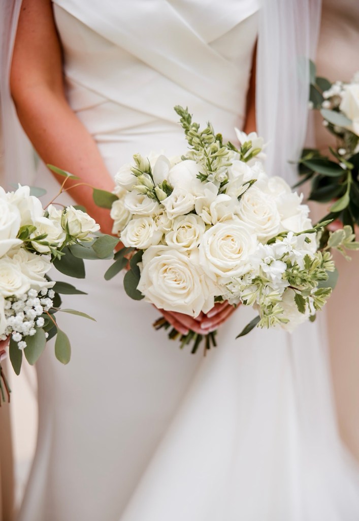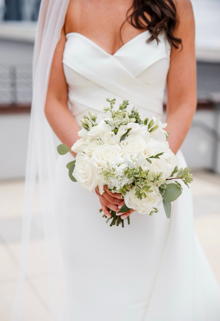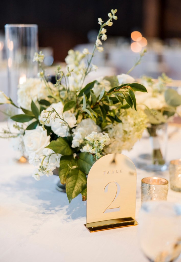 Ashley chose an all white floral theme with simple table designs using greenery and a variety of candles.